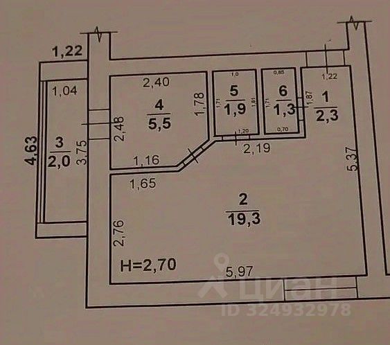 Планировка: прихожая, большой зал ( есть возможность сделать 2 комнаты), раздельный саеузел, кухня, балкон.
