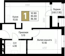 Общая площадь36,3 м²