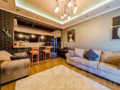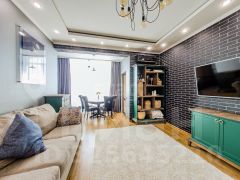 Квартира с дизайнерским ремонтом, сочетает в себе стиль и функциональность.
