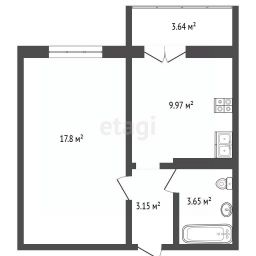 Общей площадью: 34,5 кв.м. и застекленная витражная лоджия 4 кв.м.