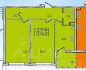 Объект 2050. 2 комн.кв. 64 кв.м. 1/16