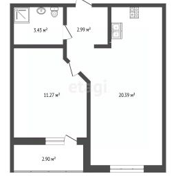 В продаже ВИДОВАЯ, квартира с большой кухней-гостиной 20м2, в одном из лучших ЖК "Южный Квартал".