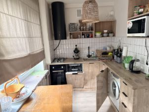 В квартире выполнен дизайнерский ремонт, что создает атмосферу уюта и стиля. Высота потолков — 2,6 метра, что добавляет простора. В наличии все необходимое для комфортной жизни: современная мебель, качественная бытовая техника. Планировка удобная, санузел совмещен, что экономит пространство. Есть балкон, где можно наслаждаться свежим воздухом.
