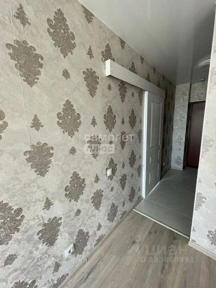 поклеены современные обои, на полу ламинат/плитка,