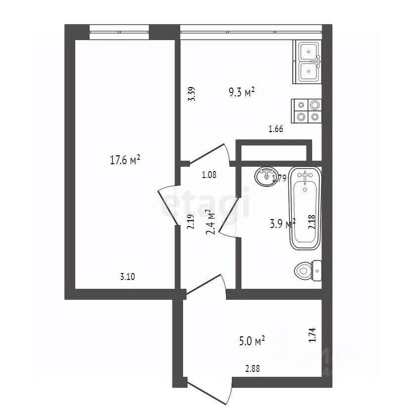 9,3 м²