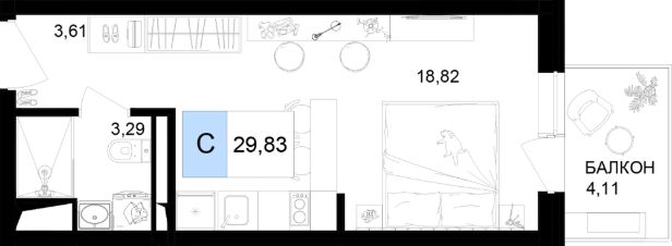 Общая площадь29,83 м²