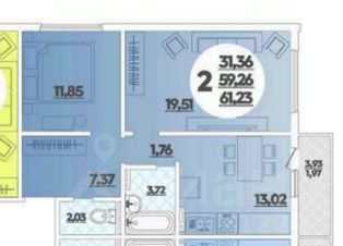 Объект 2059. В новом, стремительно развивающемся районе, в 800 метрах от высокого берега, продается полноценная 2х-комнатная квартира, с ремонтом от застройщика, общей площадью 61 кв.м,