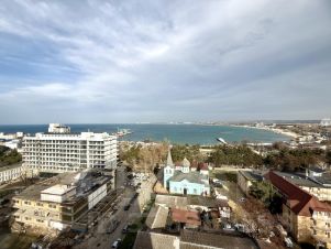Вид из квартиры впечатляет и умиротворяет. Две большие теплые лоджии и панорамное остекление в пол в гостиной позволяют наслаждаться видом на море и закатами каждый день
