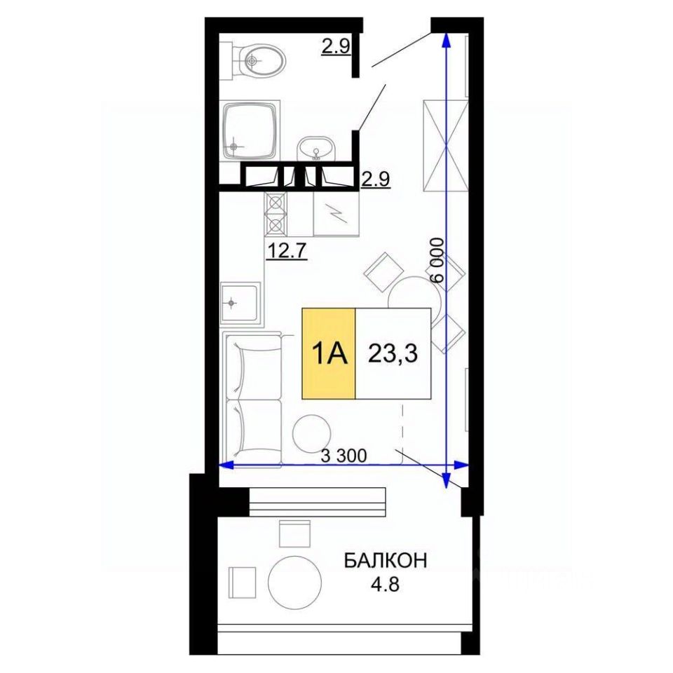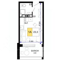 Продаются 1 комн. апартаменты-студия, площадью 23.3 кв.м. Возможен вариант покупки с использованием ипотечных средств.