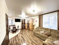 Внутри квартиры предусмотрены вместительные шкафы-купе в спальне, коридоре и детской комнате. На улице расположены собственная подсобка и место для парковки автомобиля, что обеспечивает удобство жильцов. Район отличается развитой инфраструктурой: в двух шагах находится школа 4, есть выход на улицу Гребенскую, ведущую к Центральному пляжу, всего 20 минут пешком. Ухоженный, полностью огороженный двор с цветниками, скамейками и виноградной беседкой создает атмосферу уюта и домашнего комфорта.
