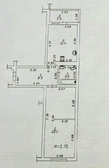 Объект 178477. Пpoдаю 2х комнатную квартиру общей площадью 50.3 кв.м.