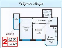 Общая площадь 62м2 - большая кухня, просторная прихожая.
