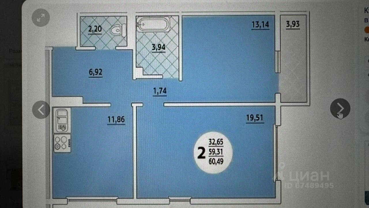 60,49 м²