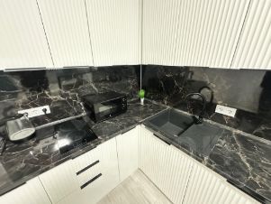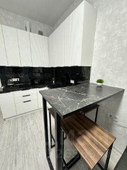 В студии выполнен качественный ремонт: современные материалы и нейтральные цвета создают атмосферу уюта. Просторная кухня площадью 10 кв. м оборудована всем необходимым для приготовления еды. Санузел совмещенный, выполнен в современном стиле.