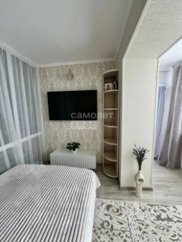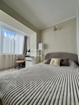 Квартира светлая и теплая, комнаты изолированы. Одна из них разделена стеклянной перегородкой на спальню и гостиную. В каждую можно войти отдельно. Сделан хороший ремонт, остается мебель (не остается белые тумбы, банкетка, кресла, стулья, телевизоры, микроволновая печь, мультиварка, принтер).