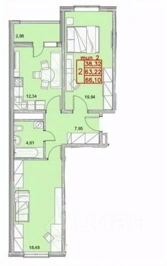 Объект 173117. Продается светлая и просторная квартира с двумя комнатами и кухней-гостиной!