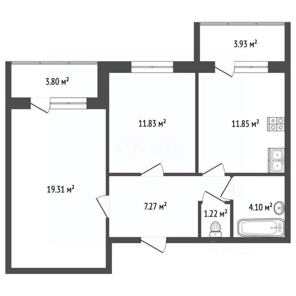 В квартире предусмотрены два просторных балкона, которые не только расширяют пространство, но и служат отличными зонами для хранения. Выходы из комнаты и кухни обеспечивают удобный доступ к свежему воздуху и прекрасным видам.