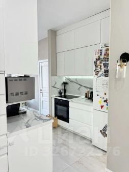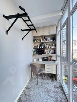 Кухня-гостиная с выходом на панорамный балкон. Пространство организовано так , что рабочая кух зона отделена от гостиной чтоб избежать запахов от приготовления. Имеется гардеробная комната. В балконной зоне организовано рабочее пространство для работы с компьютером.