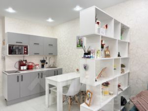 Планировка позволяет зонировать пространство на кухонную и жилую зоны.