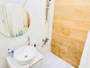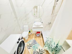 Ванная комната в плитке, установлена новая сантехника.
