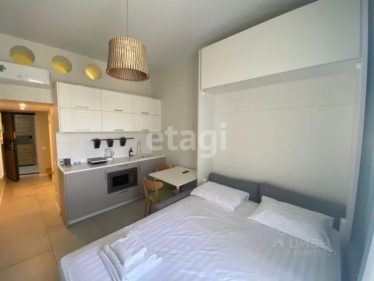 Продается 4-х местный двухуровневый аппартамент в курортном отеле "Россиянка" на 3 этаже. Общая площадь 21,3 кв.м (вместе с балконом). В номере выполнен качественный современный ремонт. Есть все необходимое для проживания или сдачи: мебель, техника. Много скрытых мест хранения. Все продумано до мелочей. Много световых точек. Коммуникации центральные. Горячая вода и отопление будет подаваться из собственной газовой котельной.