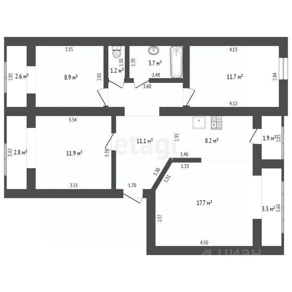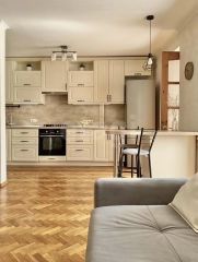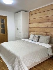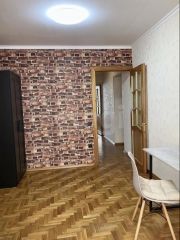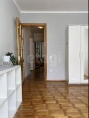 Продаётся просторная трёхкомнатная квартира с современным ремонтом. Планировка — "распашонка", окна выходят на две стороны, одна из которых солнечная. Три изолированные комнаты, большая кухня-гостиная, пол — паркет.