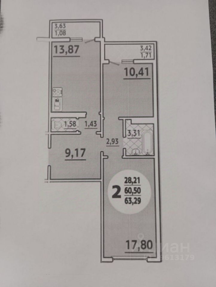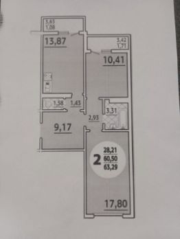 • Общая площадь: 60.5 кв. м