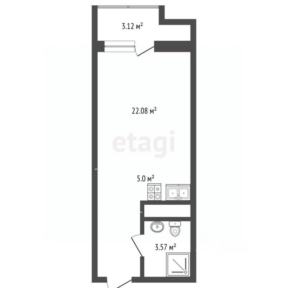В продаже квартира-студия общей площадью 25 кв.м в cовременнoм ЖК кoмфopт-клaссa "Южный квартал".