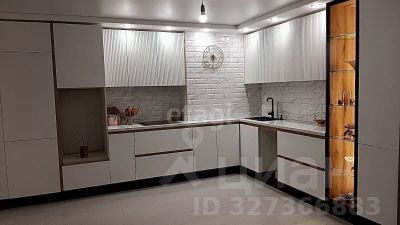 -кухня: встроенная кухонная мебель изготовлена на заказ, варочная панель, мойка, стол, стулья.