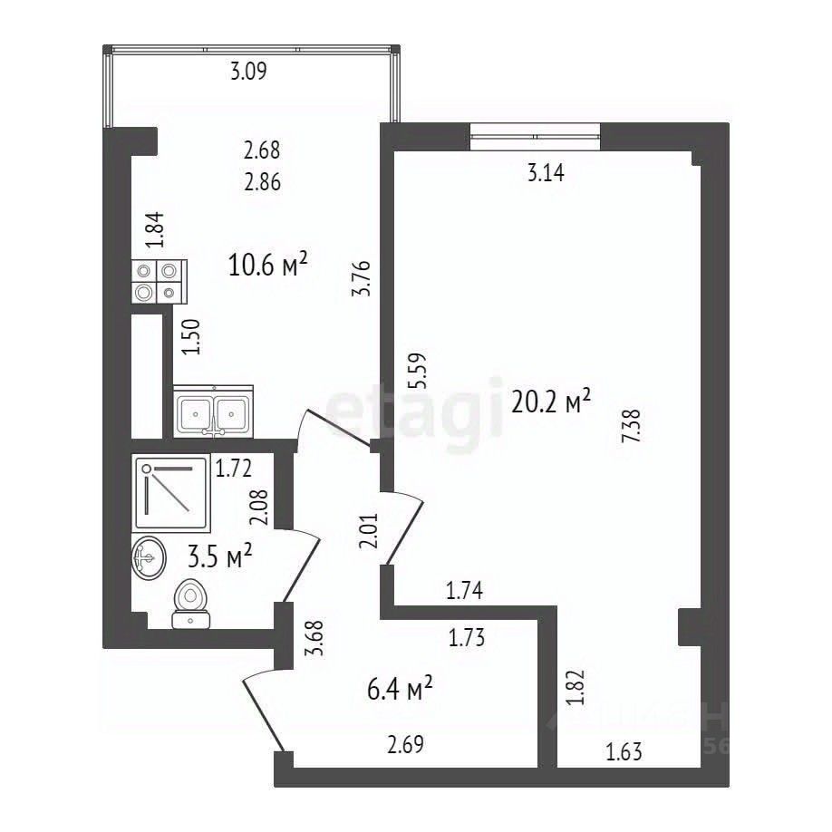 10,6 м²