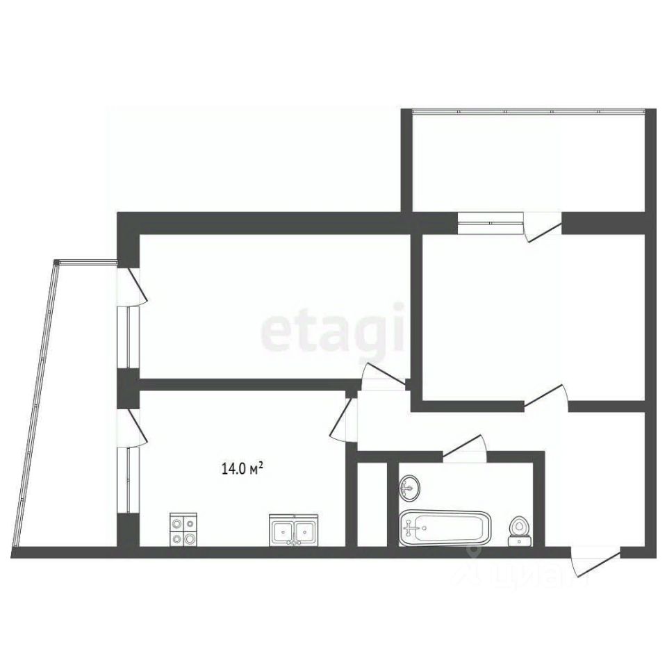 Общая площадь: 50,6 кв.м.