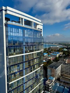 • Комплекс расположен в самой уютной части центра Анапы и выполнен в современном стиле, с индивидуальной архитектурой здания. Обилие стекла и панорамные окна на живописные пейзажи гор, Чёрного моря и маяка.