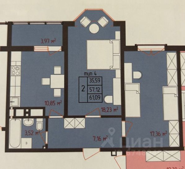 Объект 179636. В продаже просторная двухкомнатная квартира 62кв м.
