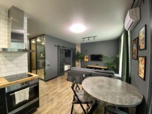 2 комнатная квартира с просторной кухней - гостинной (по факту Евро 3). Ремонт очень стильный и красивый, много точек света, мебель подобрана со вкусом!
