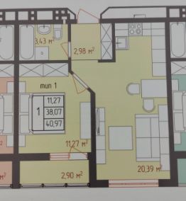 Квартира площадью 41 м², расположенная на 12-м этаже 18-этажного монолитного дома, встречает вас качественным ремонтом: