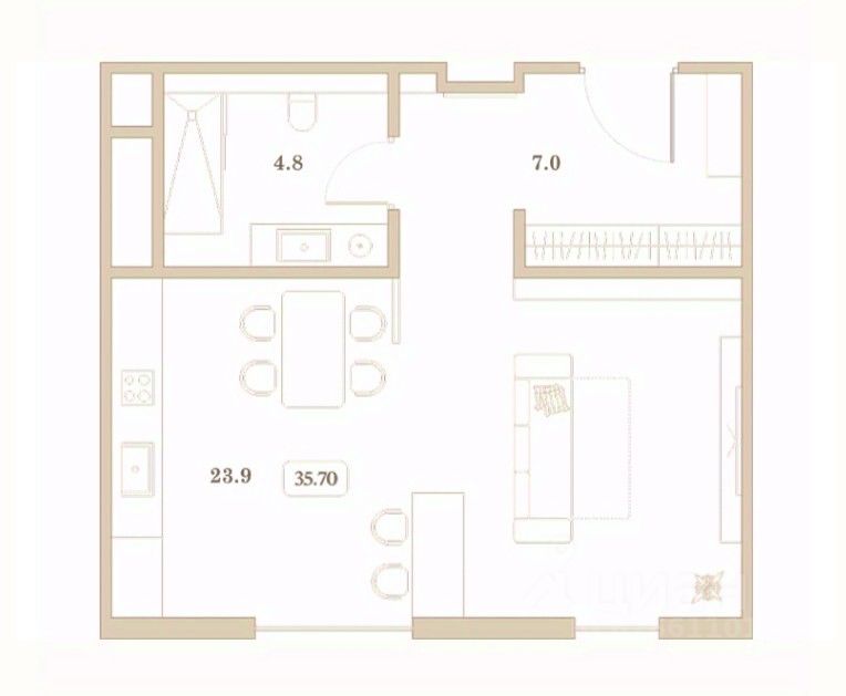 Общая площадь35,7 м²