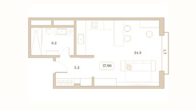 Продается апартаменты-студия, 37,9 м²