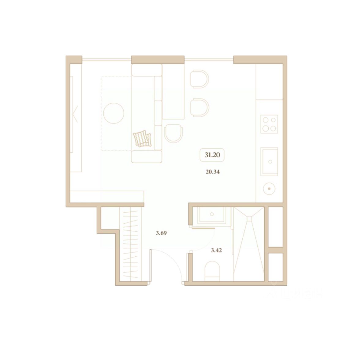 Общая площадь31,2 м²