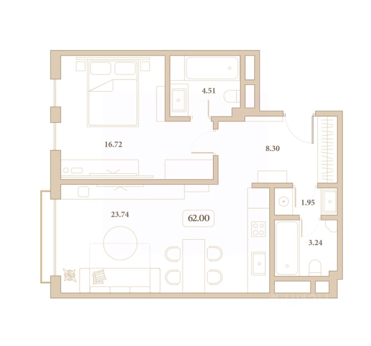 Общая площадь62 м²