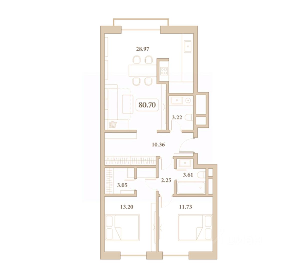 Общая площадь80,7 м²