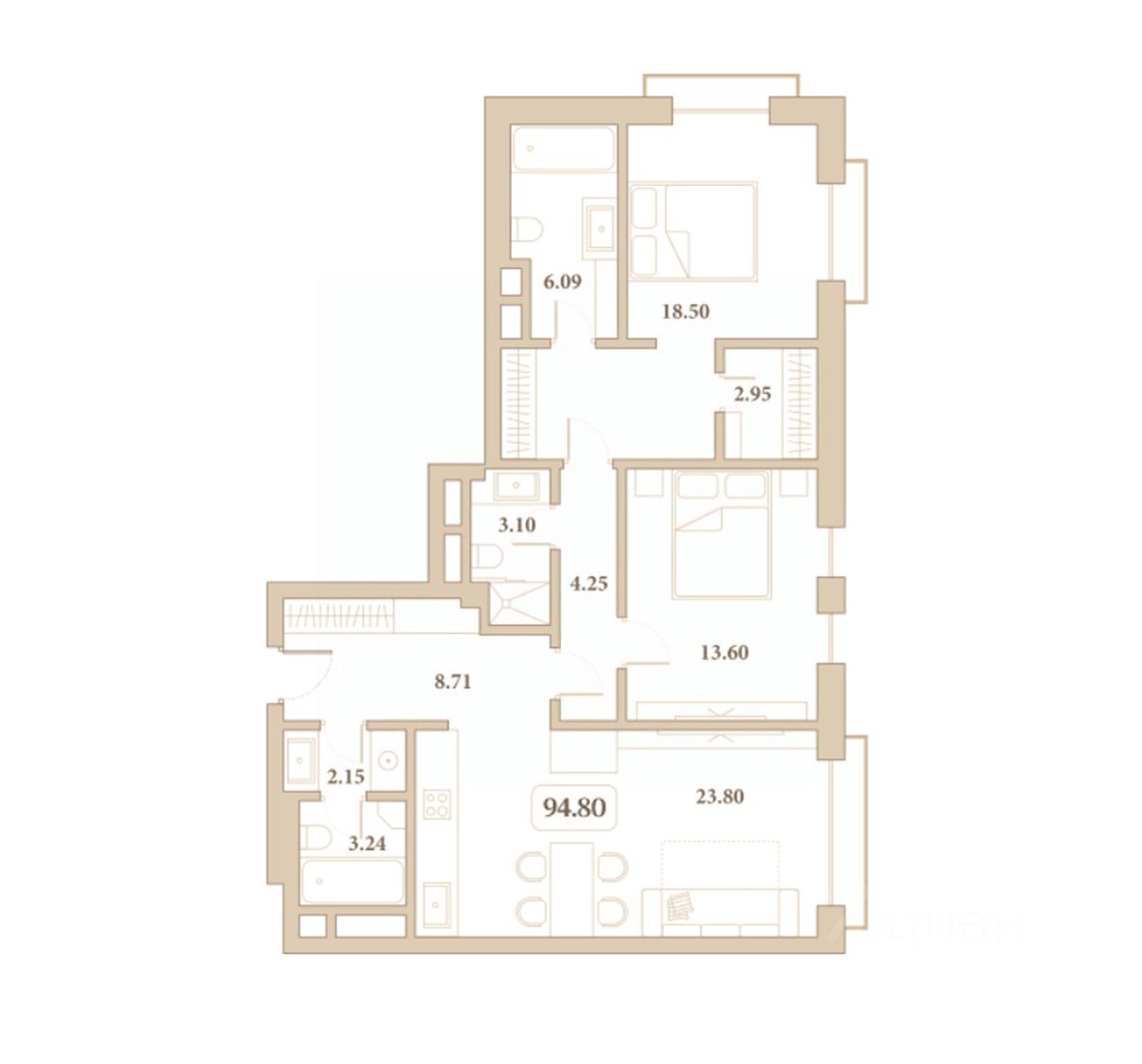 Общая площадь94,8 м²