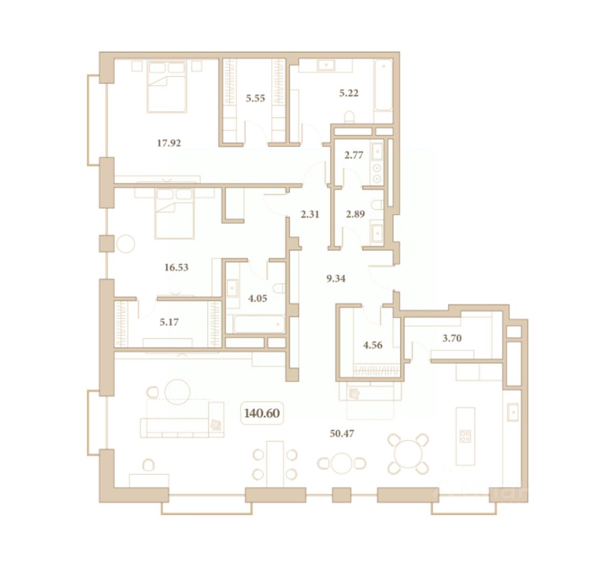 Общая площадь140,6 м²