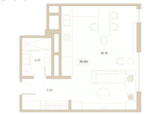 Продается апартаменты-студия, 39 м²