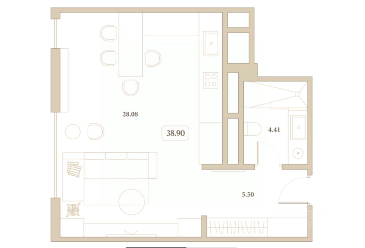 Общая площадь38,9 м²