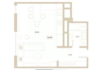 Продается апартаменты-студия, 38,9 м²
