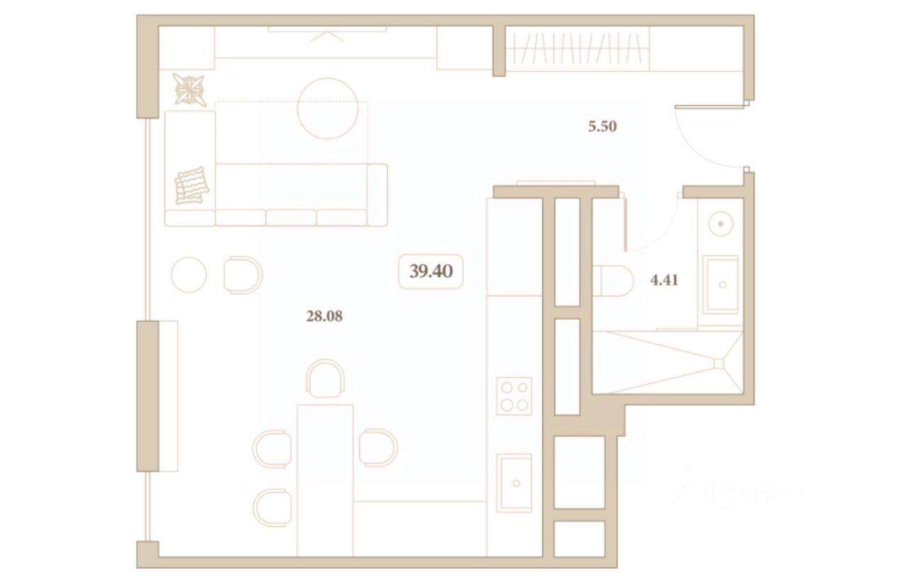 Общая площадь39,4 м²