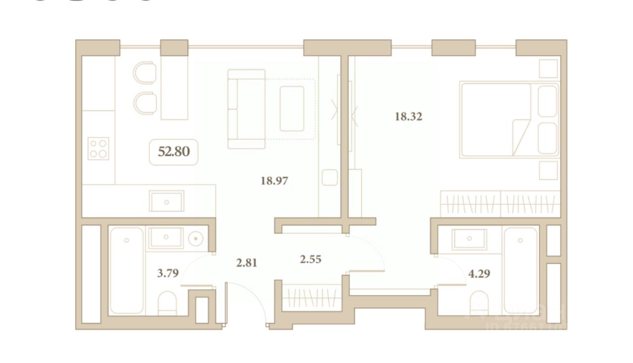 Общая площадь52,8 м²