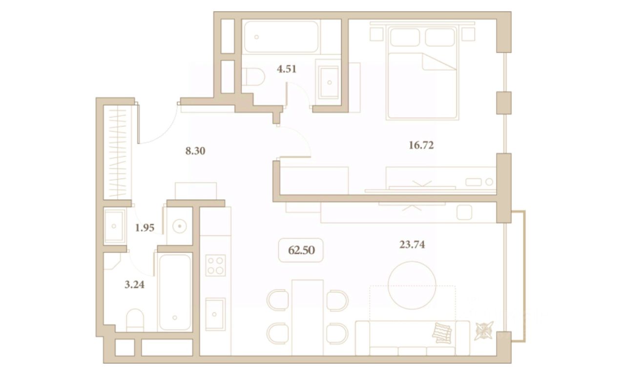 Общая площадь62,5 м²