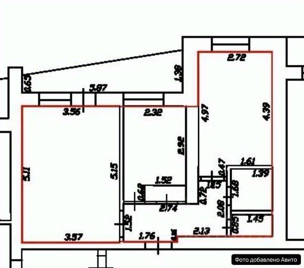 Общая площадь квартиры 52 кв м, включая балкон, без балкона - 47,2 кв м, требуется ремонт.