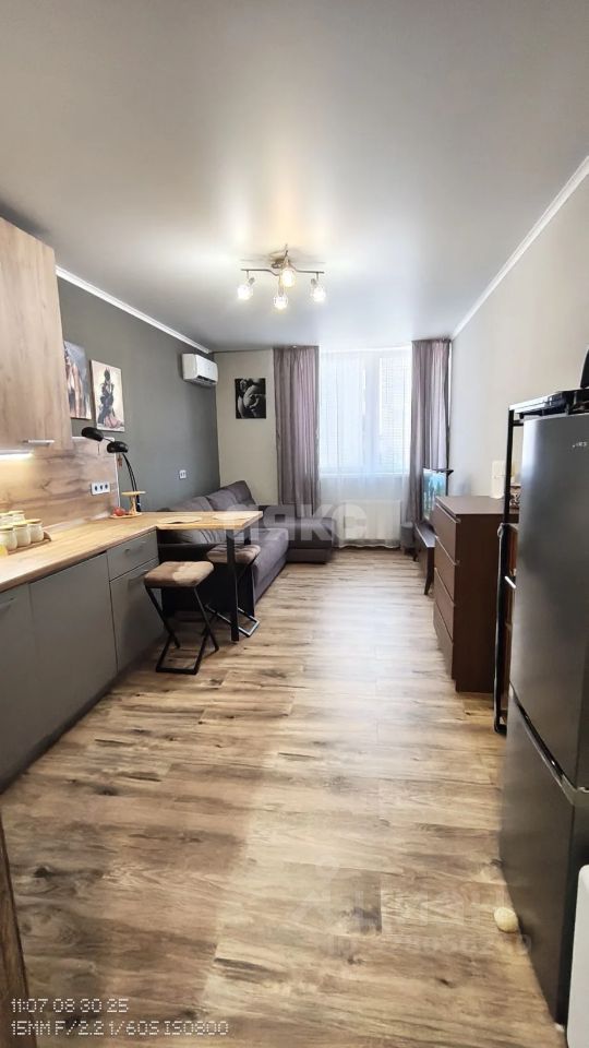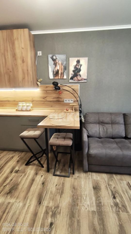 ЖК Метеора, студия с ремонтом в стиле лофт, Из мебели: кухонный гарнитур, в прихожей большой шкаф для одежды, ,диван, комод, тумба под телевизор, кухонный гарнитур, стулья, мини-холодильник. Имеется бытовая техника: кондиционер, водонагреватель, стиральная машинка.